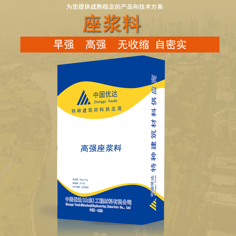 座漿料是灌漿料的一種,由水泥作為結(jié)合劑、高強(qiáng)度細(xì)骨料、復(fù)合膨脹劑、減水劑等摻合料及其他外加復(fù)合材料組成的水泥基干混料,具有早強(qiáng)、高強(qiáng)度、微膨脹、無收縮、不流掛、易施工等性能,加水?dāng)嚢韬缶哂杏|變性、可塑性,硬化性保水性好,座漿料的使用可以避免其他灌漿料流動(dòng)性過大,施工不易,顆粒太粗, 粘性差,泌水嚴(yán)重,開裂爆倉等現(xiàn)象。